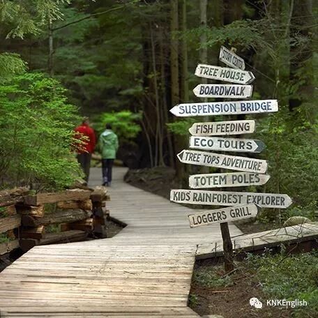 整个公园被吊桥分为东西两侧,一共大致有4个部分:吊桥、悬崖漫步、树上漫步、散步道。在图腾柱的另外一边还有用来科普雨林中植物以及其他地理知识的这么一小片区域,虽然也有很多人造的痕迹,由着木头台阶而下就可以来到140多米长,40多层楼高的吊桥上面,在桥上可以看尽“人生百态”。
