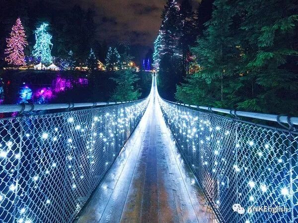 卡皮拉诺吊桥公园是温哥华最古老的观光景点。这被誉为世界上最伟大的吊桥,全长450英尺,当风掠过山谷时吊桥会摇摆发声,颇似人的笑声,因此也被称为“笑桥”。